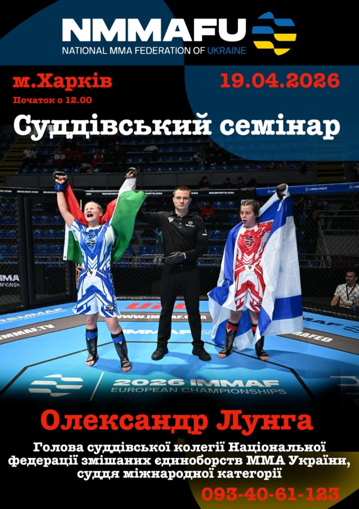 19 квітня в Харкові буде проведено суддівський семінар під керівництвом Голови суддівської колегії Національної федерації змішаних єдиноборств ММА України, судді міжнародної категорії — Олександра Лунги.