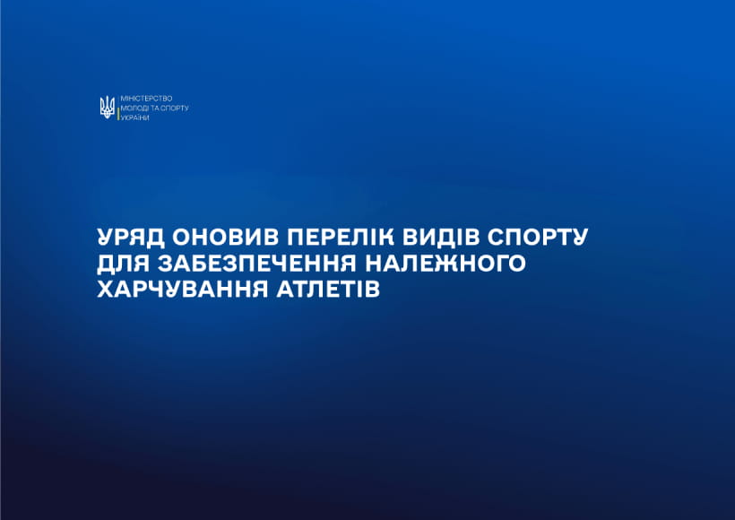 Кабінет Міністрів України ухвалив постанову «Про внесення змін у додаток 1 до постанови Кабінету Міністрів України від 18 вересня 2013 р. № 689». Рішення спрямоване на оптимізацію раціону спортсменів та приведення нормативної бази у відповідність до сучасного стану розвитку спорту в державі.
