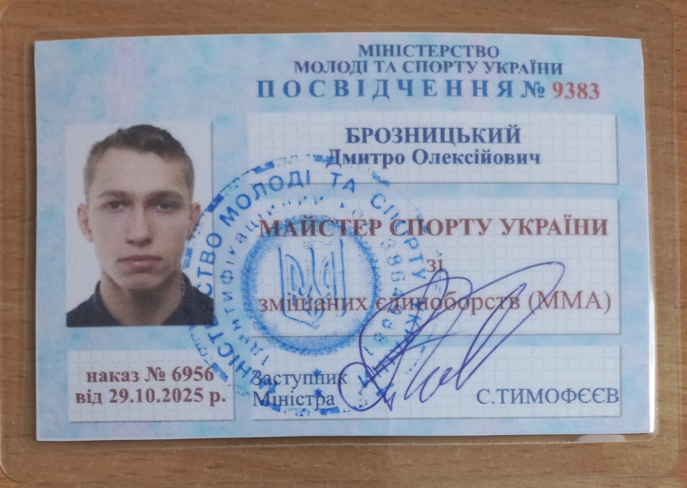 Вітаємо Дмитра Брозницького з присвоєнням звання “Майстер спорту України” зі змішаних єдиноборств ММА.