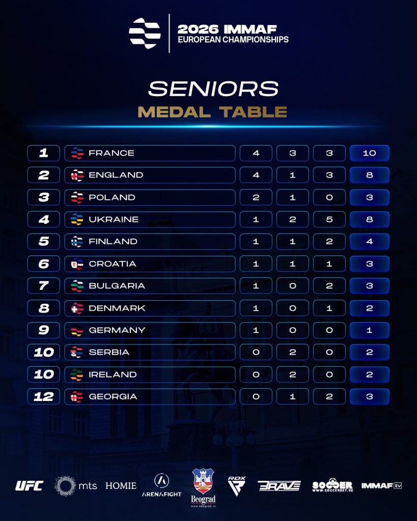 15 лютого спортсмени Національної збірної України зі змішаних єдиноборств ММА серед дорослих здобули 1 золоту, 2 срібні і 5 бронзових медалі та зайняли четверте місце в Європі в загальному командному заліку.