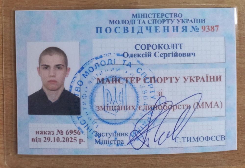 Вітаємо Олексія Сороколіта з присвоєнням звання “Майстер спорту України” зі змішаних єдиноборств ММА.
